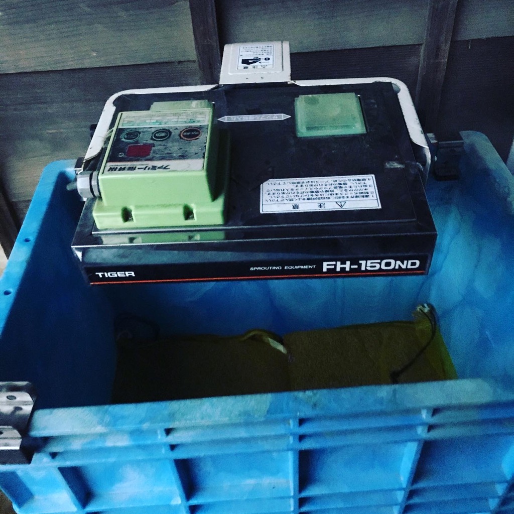種籾を水につけて芽出しをします!温度のかかる機械で100度まで合計温度がかかれば完了